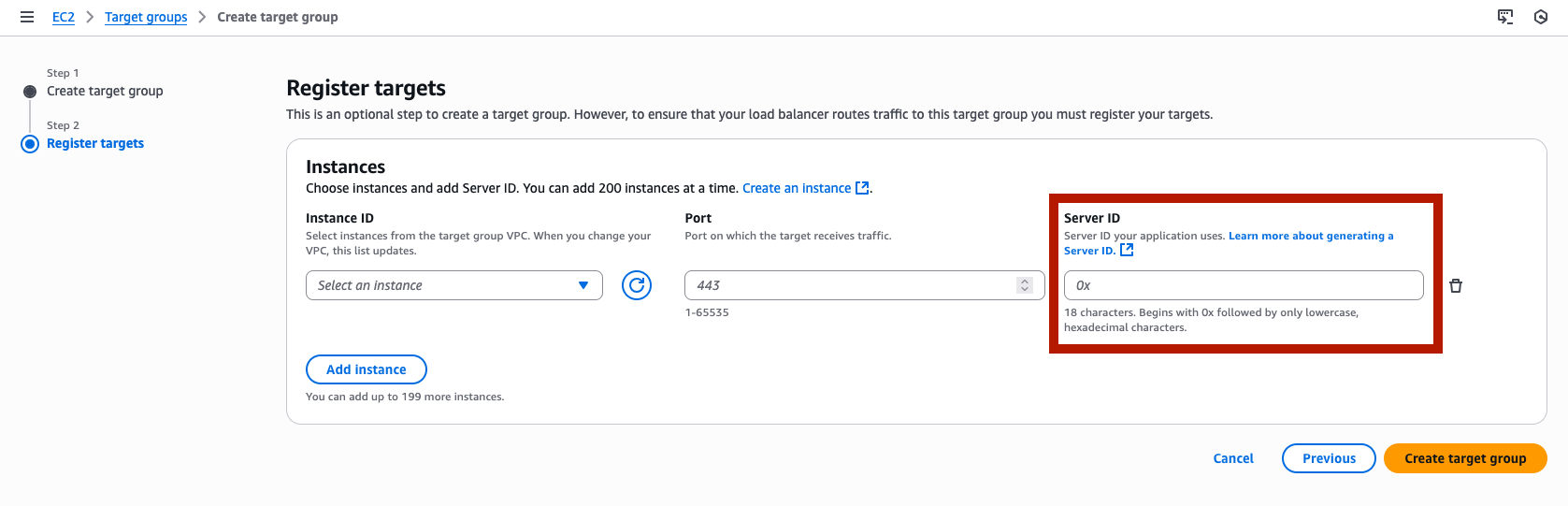 This is where you configure which server ID corresponds to which instance. This mechanism (referred to as plaintext CID) allows NLB to route traffic without requiring your decryption keys, avoiding security risks. NLB uses the Server ID (part of the Connection ID) to steer traffic accordingly.