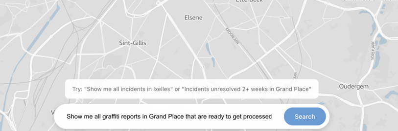 Figure 1: User asking the agent “Show me all graffiti reports in Grand Place that are ready to get processed”
