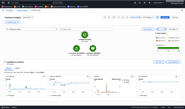 In this post, we showed how to deploy Moodle LMS using a fully serverless architecture on AWS—combining AWS Fargate for containers, Amazon Aurora Serverless for the database, and Amazon ElastiCache Serverless for caching. This approach enables educational institutions to automatically scale for variable traffic patterns, optimize costs through pay-per-use pricing and Fargate Spot savings, reduce operational overhead by eliminating capacity planning, and gain visibility into performance with integrated Amazon CloudWatch monitoring. Explore the complete solution in our GitHub repository to get started. This comprehensive serverless solution allows educational institutions to focus on delivering quality learning experiences rather than managing infrastructure.
