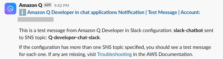 - Follow the Get started with Slack tutorial in the Amazon Q Developer in chat applications documentation.