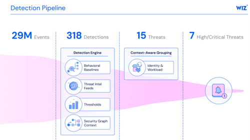 Figure 1: Wiz prioritizes risks based on threat intelligence and potential impact, helping teams to reduce alert fatigue and focus on high threat alerts