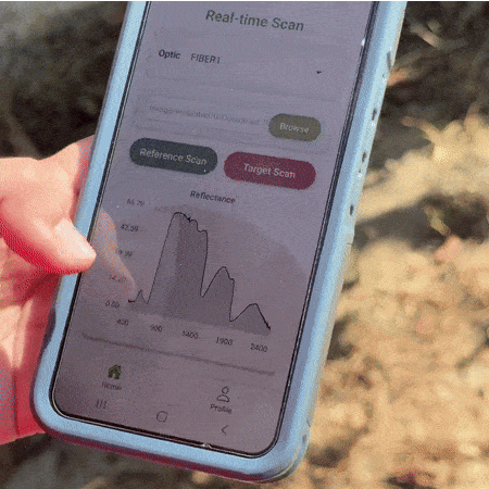 This AI model is now integrated into a complete digital pipeline, accessible through both a mobile app and a web platform. Growers can walk through their fields, scan individual leaves using a handheld spectrometer connected via Bluetooth to our mobile app, and receive trait predictions in seconds.