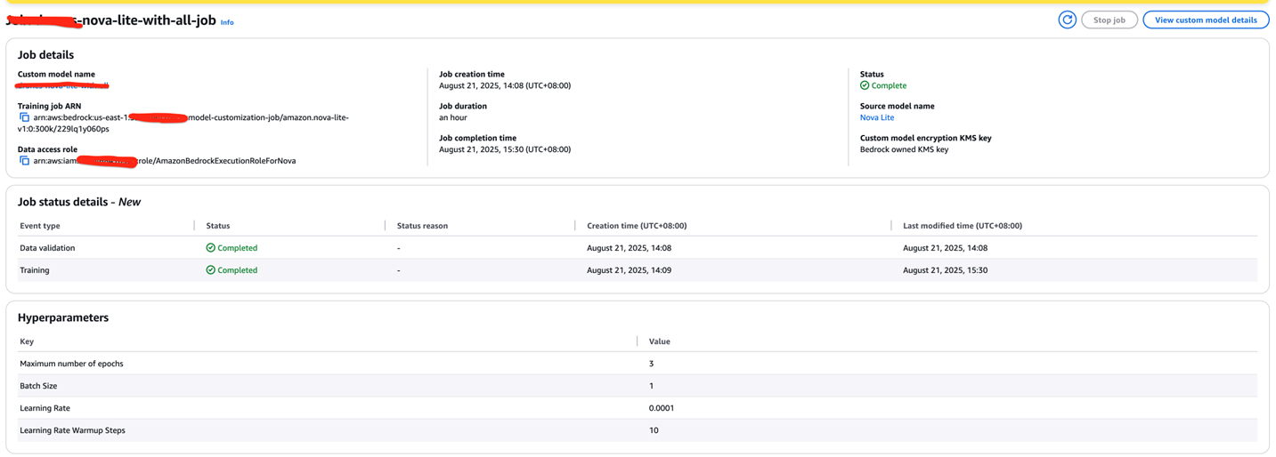 基于准备好的 JSONL 数据集,创建一个 Nova Lite 微调训练任务: