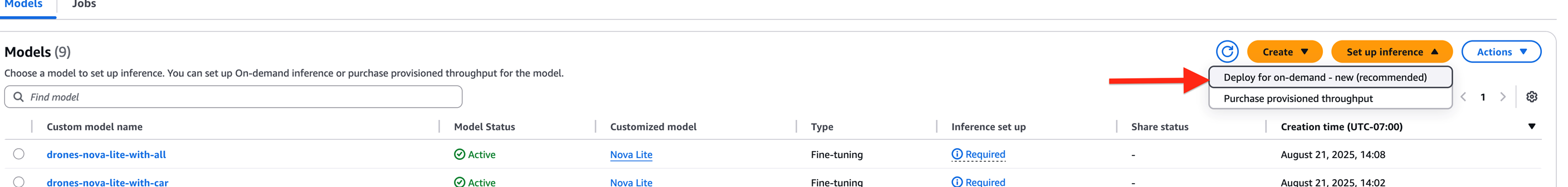 Model invocation implementation reference: https://aws.amazon.com/blogs/machine-learning/implementing-on-demand-deployment-with-customized-amazon-nova-models-on-amazon-bedrock