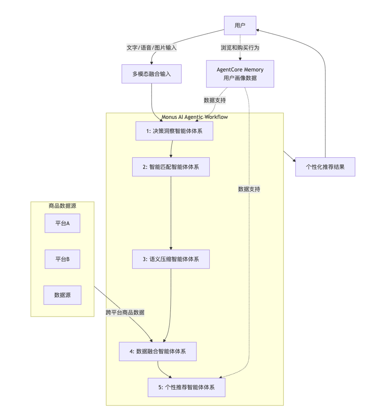 通过上述技术架构与流程设计,Monus AI 实现了从 “单一搜索工具” 到 “专属购物伙伴” 的根本性转变。如今,用户无需在重复搜索中反复描述需求,AI 能够精准理解需求的上下文演进过程,为用户提供具备连续性的个性化服务体验。这一技术架构不仅彻底解决了传统 AI 搜索存在的记忆缺失、推荐同质化等问题,更开创了电商 AI 领域的全新服务范式,为行业树立了技术与体验双重领先的标杆。