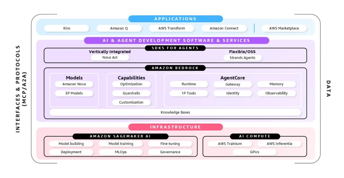 Amazon Bedrock AgentCore 并非单一产品,而是一套完整的服务,为您的智能体提供核心能力,这些服务既可以独立使用,也可以协同工作: