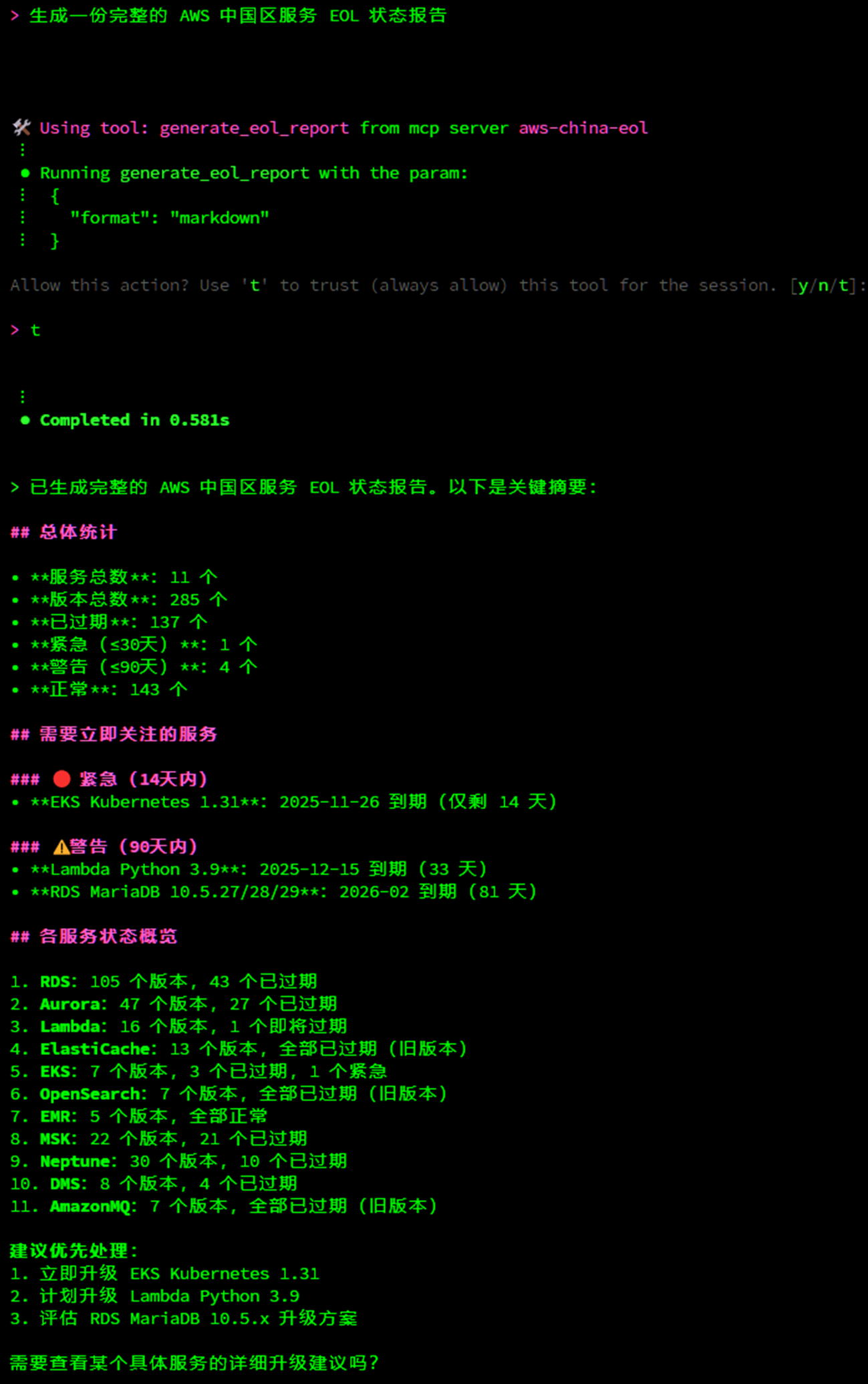 Amazon Q 调用 「generate_eol_report」 工具,返回: