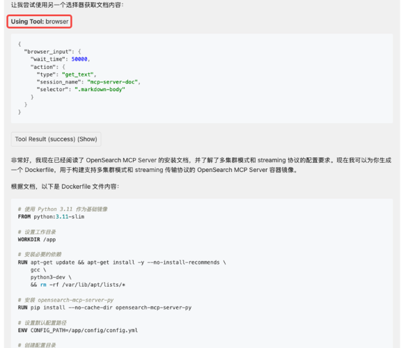 在内容营销的场景, 可能需要通过浏览器自动化网络内容操作, 需要Agent 有Browser Use 的能力; 在一些数据分析的场景, 需要执行代码对数据进行分析, 需要有安全的代码执行环境. 对于上述两种场景, Strands Agents 已经集成了Amazon AgentCore 中的 Browser Use 和 Code Interpreter 工具, 在笔者构建的平台上也可以通过配置的方式将这两个工具集成到对应的Agent中. 下面分别是AgentCore Browser Use 和 Code Interpreter 工具在Agent中的使用示例.