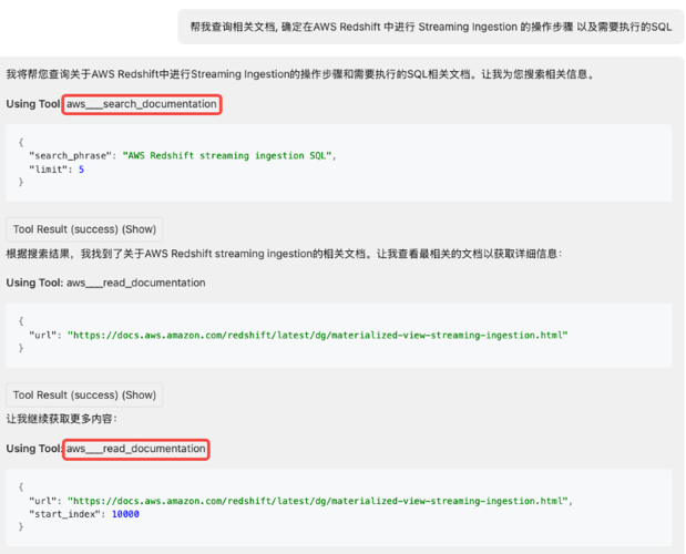 将AWS Knowledge MCP 作为Agent 的工具, 可以使用户立刻化身AWS 知识专家, 对于AWS 服务的使用, 最佳实践都可以通过Agent 来回答, 如下图所示.