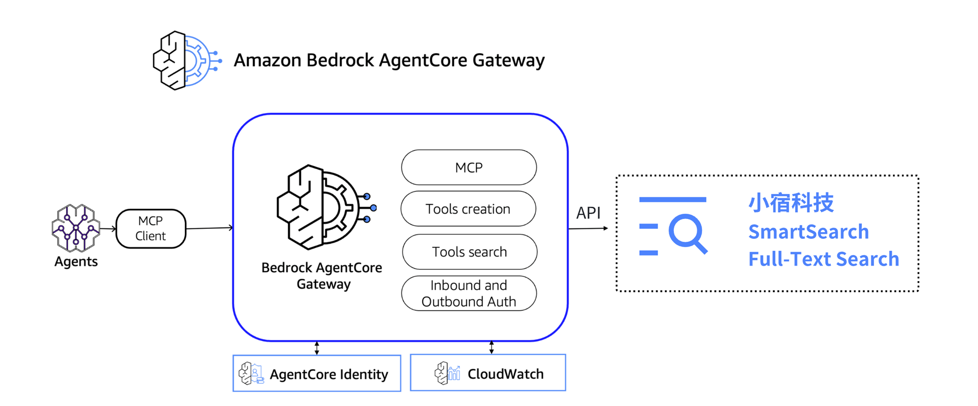 并通过AgentCore Gateway与小宿智能搜索的集成,方便的通过MCP调用小宿智能搜索,实现数据的高效处理和深度语义理解,显著提升了智能化水平。