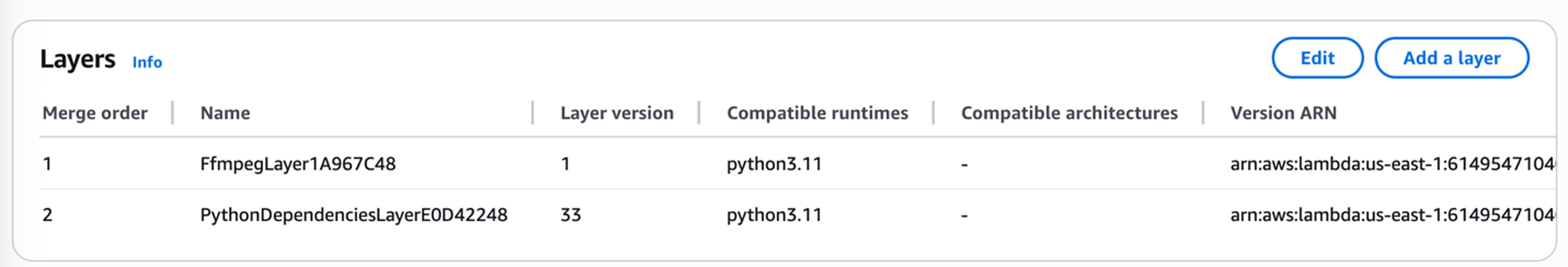 - Processing user-generated content using AWS Lambda and FFmpeg: https://aws.amazon.com/blogs/media/processing-user-generated-content-using-aws-lambda-and-ffmpeg/
