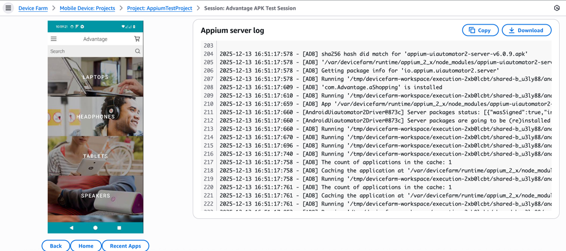 测试过程中,可通过Amazon Device Farm控制台实时监控设备状态和测试进度,提供可视化的测试执行反馈。