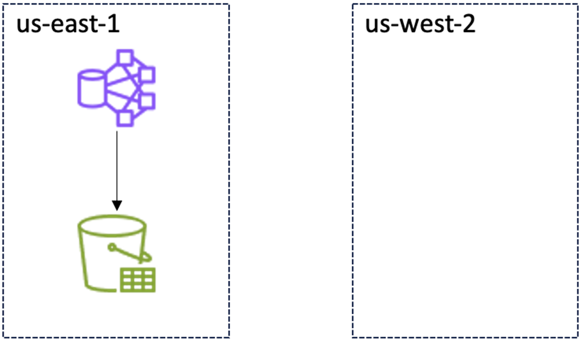 当前架构,启动跨Region应急恢复后:
