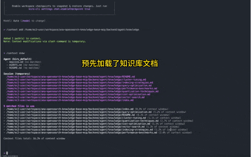 - 已经准备好一份与 OpenSearch 向量搜索最佳实践相关的知识文档(可以从这个链接获取)。在 kiro 启动后加载到 kiro 的 context 中。