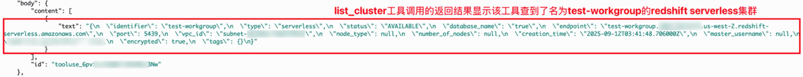 您可以根据以下日志内容分析详细了解到Redshift MCP Server中的工具被调用执行的具体逻辑。