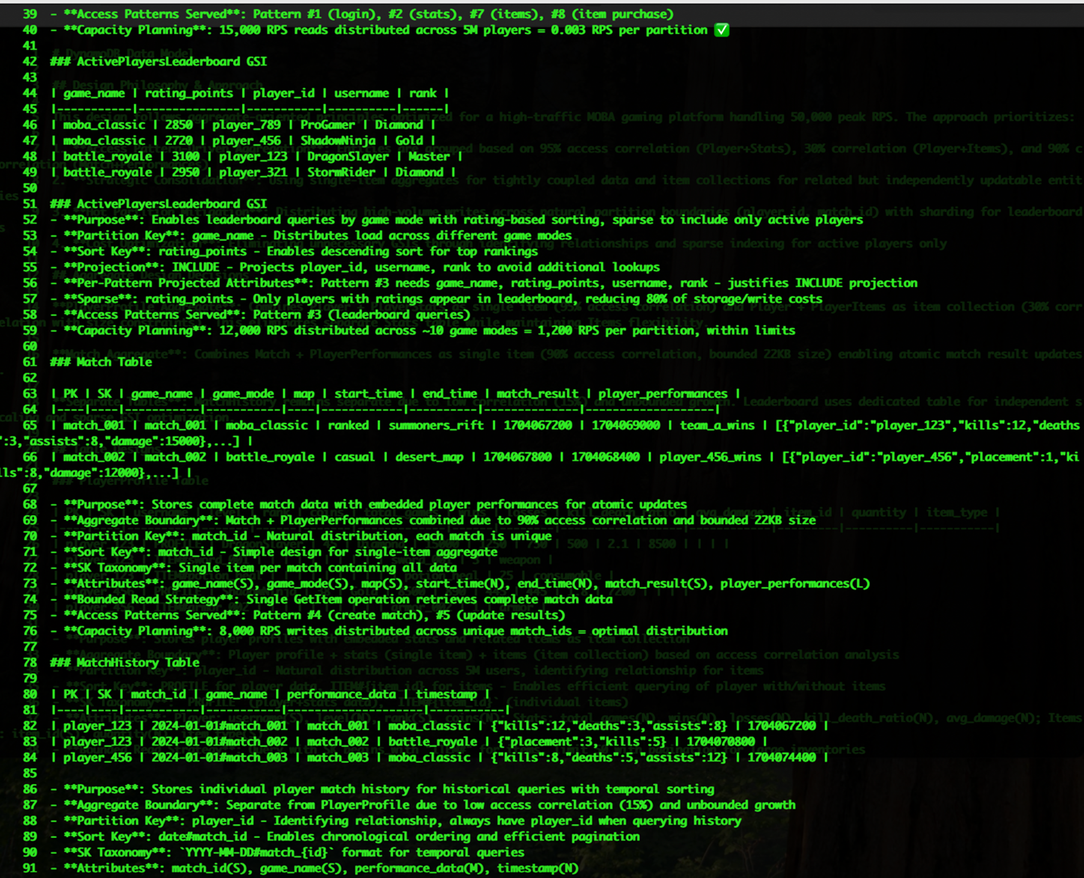 我正在为一个高流量的移动MOBA游戏平台, 设计DynamoDB数据模型。目前使用MySQL,但希望迁移到DynamoDB来更好地处理极端规模和流量。