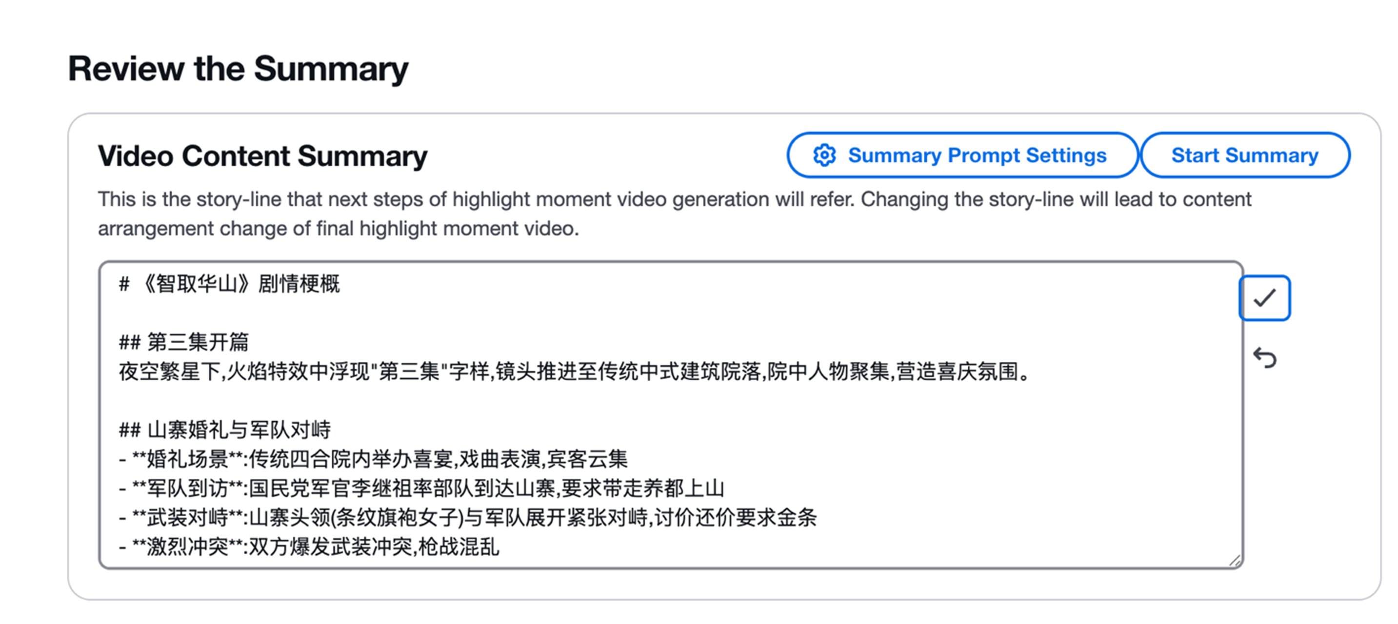 • 客户需要产出视频的形式:比如高光时刻,视频总结,视频分段,视频摘要