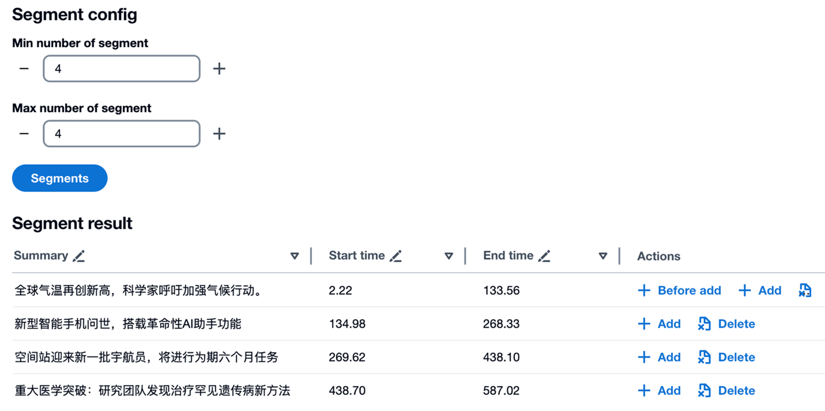 结论1:作为视频剪辑的方案来说,为了视频剪辑的效果,时间精确度是基础,另外对于不同的客户场景,长度一小时以上的视频编辑是比较普遍的需求;所以我们选择分段理解来保持时间的精度并能处理较长的视频。