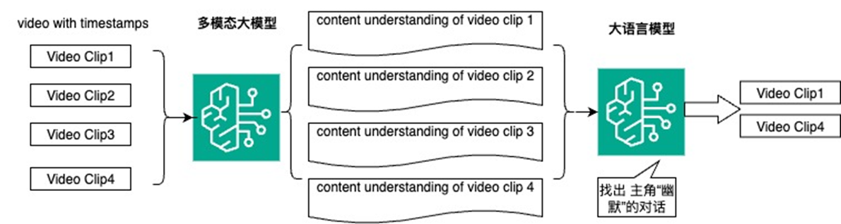 结论3  模拟内容剪辑工作流,理解视频情节后进行视频剪辑,我们更倾向于 “利用大模型对剧情全局理解,再对结构化数据进行进行推理,从而产生结果”