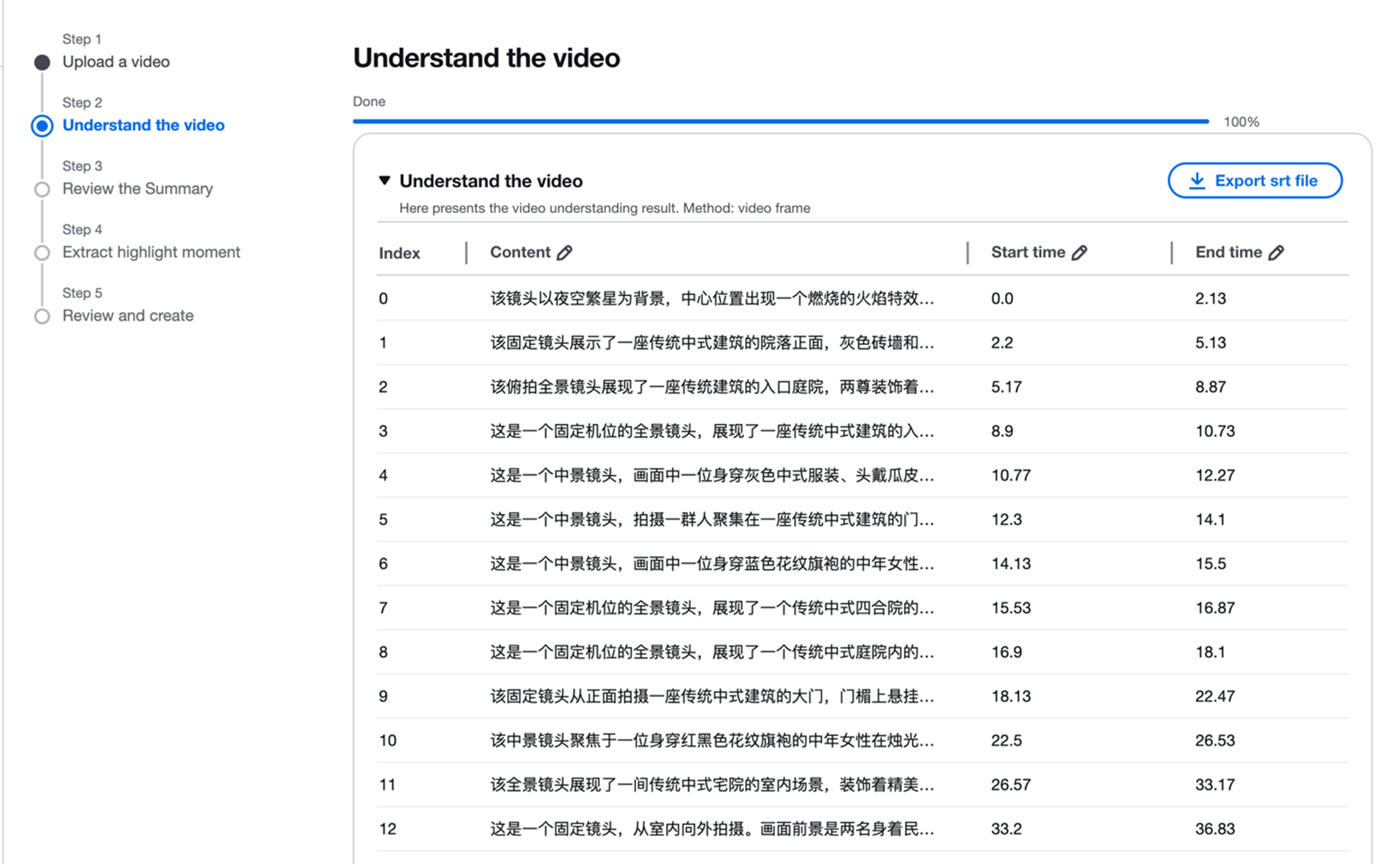 媒体娱乐、广告营销、零售电商等行业的客户拥有大量的视频资源,如网剧、纪录片、访谈和创意素材等。为满足不同观众群体和分发渠道的需求,需要对这些视频资源进行大量的编辑和再创作。对于中长视频,需要对内容总结、剪辑、翻译、提取精彩片段等;对于短视频,需要增加特效、变换、重新配音等。要完成这些工作,通过传统的视频工具链将耗费大量的人力和时间。