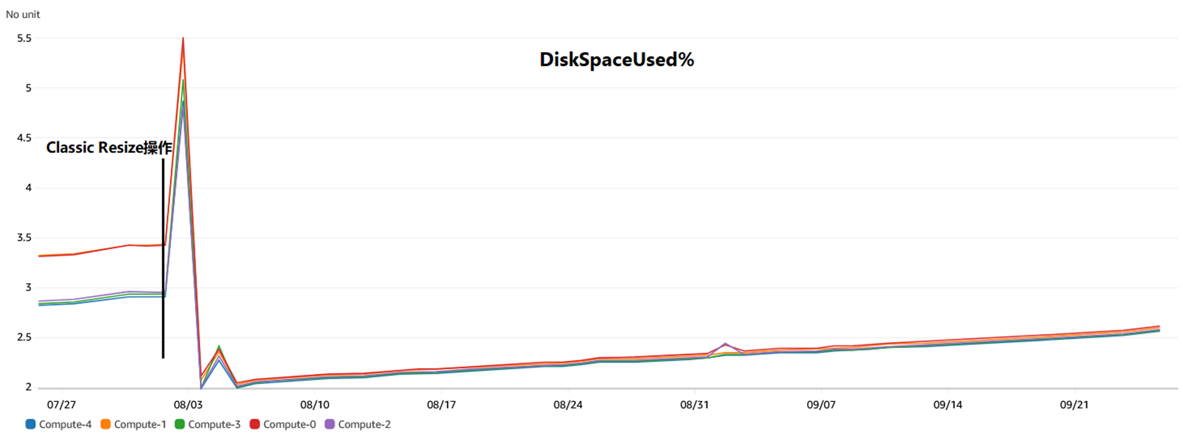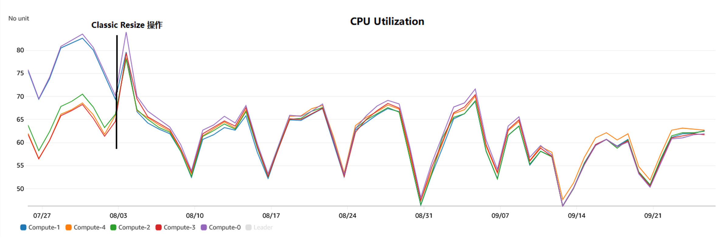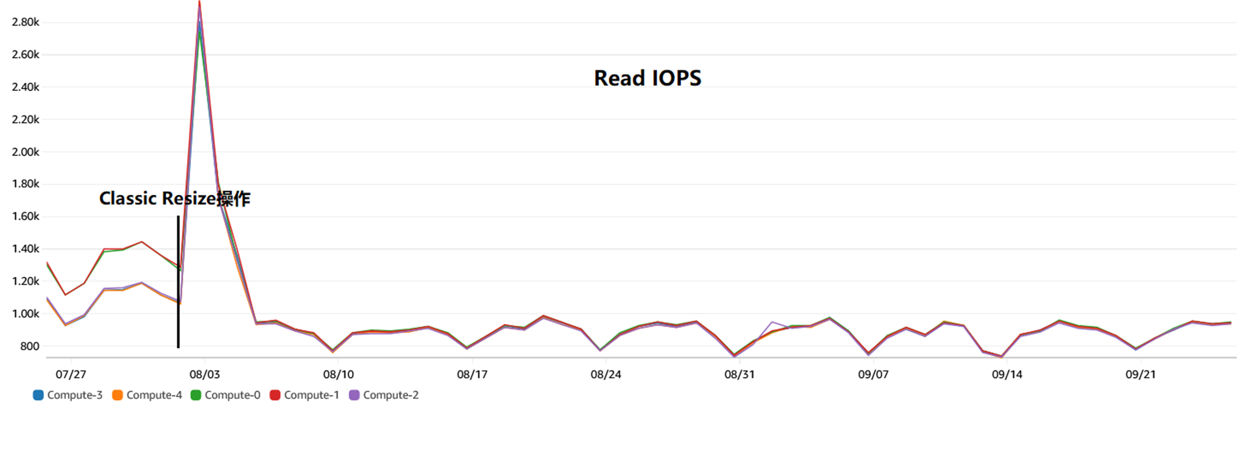 并且,在Classic Resize 操作之后,各个节点上的资源使用均匀。