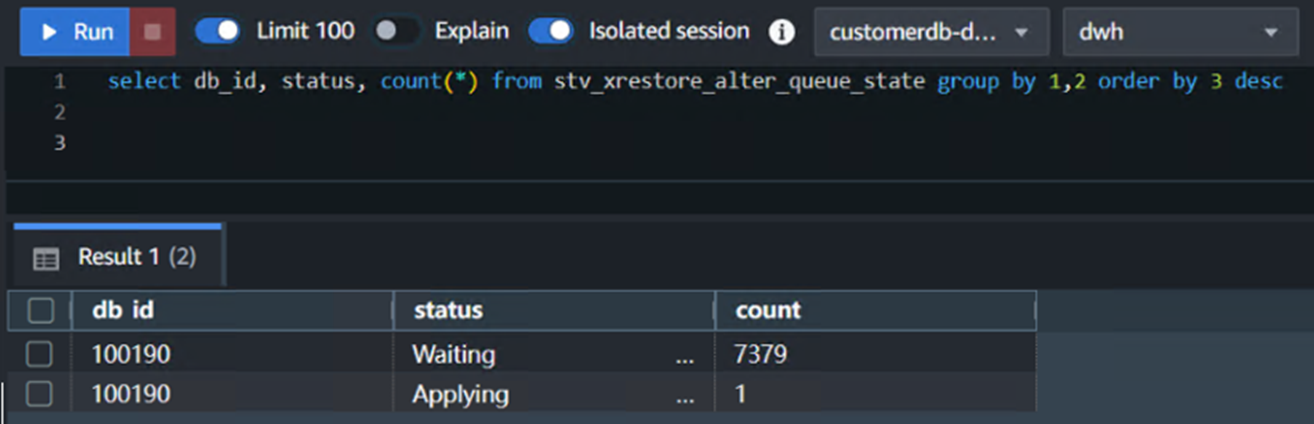 2.上述步骤完成之后,集群将变成Available,并将以KEY分布(diststyle = KEY)的所有表都临时调整为EVEN(diststyle = EVEN)。
