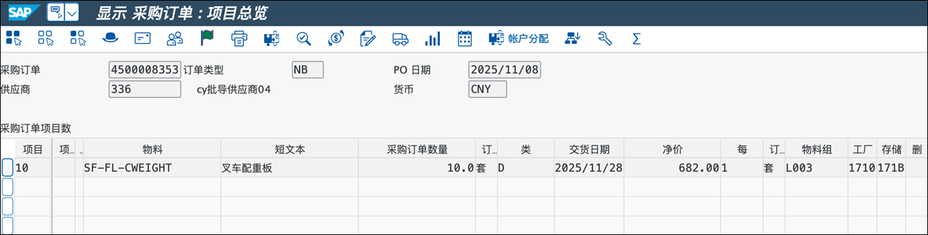 图13 SAP环境验证创建PO结果-详细信息