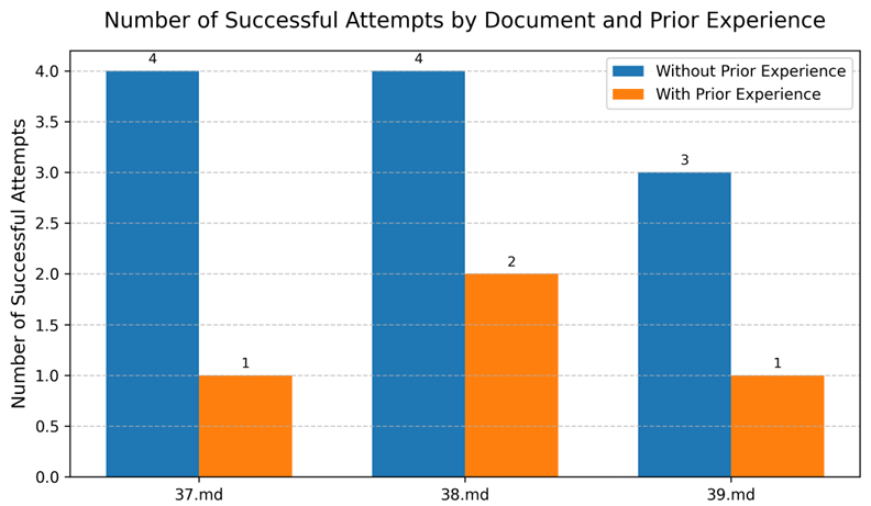 其次,我们随机取出三份小合同37.md、38.md和39.md,依次清除所有AgentCore Memory后考查其获得满足需要输出的抽取轮数;再跟它们在他们在有充足先验经验条件下成功抽取的轮数做比较。可以看出对于不同的Markdown,Agents学习到的经验都可以有效的复用,提升处理效率。