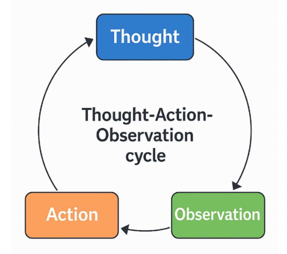 技术架构中的主Agent(Orchestrator)被设计成一个ReAct范式。ReAct将大语言模型的思维推理(Reasoning)与任务执行行动(Acting)紧密结合,让模型在解决任务时交替生成推理轨迹(Thought)和具体行动指令(Action),并通过执行这些行动获得观察结果(Observation),将新的信息反馈回推理流程中,从而形成一个闭环的认知-行动循环。