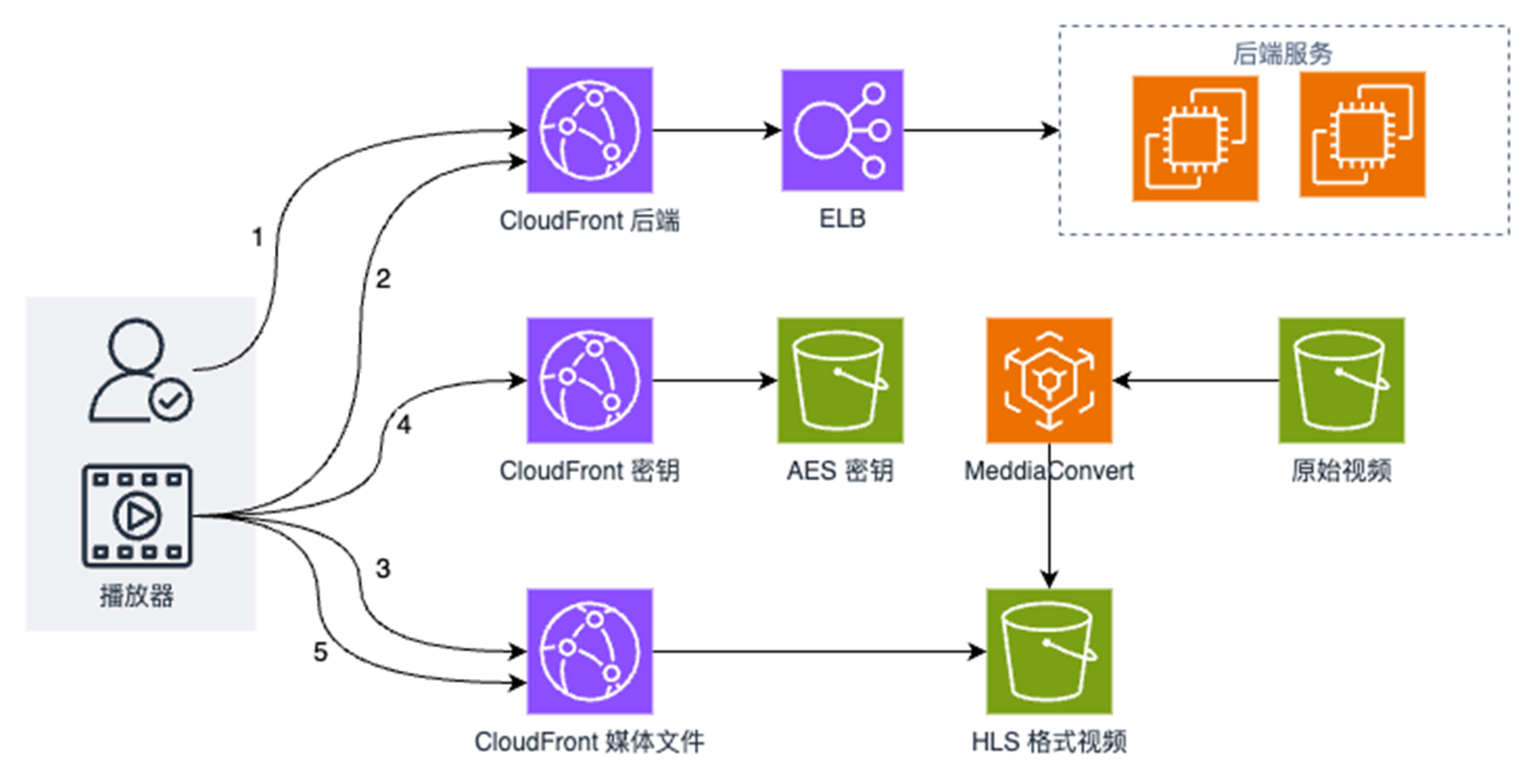 - 播放器通过带 token 的 URL 请求密钥,CloudFront 可通过 CloudFront Function + KV Store 或者 Lambda@Edge 校验请求权限