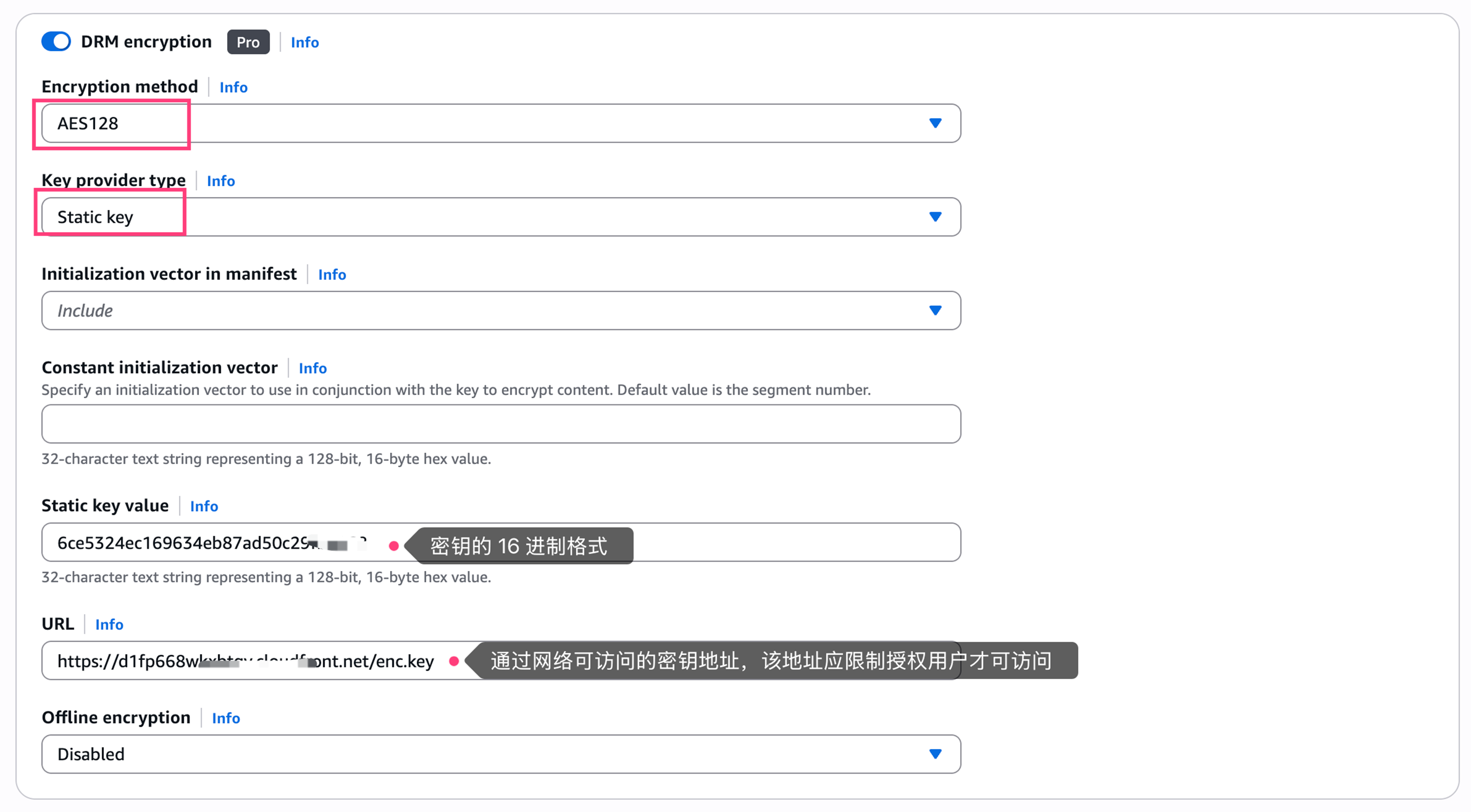 - 通过加密和 DRM 保护您的媒体资产 https://docs.aws.amazon.com/zh_cn/mediaconvert/latest/ug/using-encryption.html