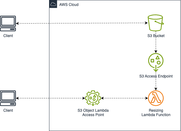 - 用户如需要对 S3 中的图片文件进行指定分辨率的缩放, 则调用 S3 Object Lambda Access Point 并将 key 指定为 image1_300x200.jpg