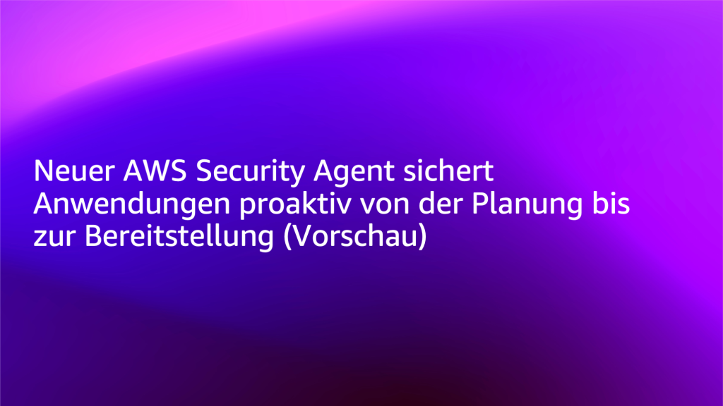 von Esra Kayabali, übersetzt durch Desiree Brunner. Auf der AWS re:Invent 2025 haben wir AWS Security Agent (Vorschau) [EN] angekündigt, einen Frontier-Agenten, der Ihre Anwendungen während des gesamten Entwicklungslebenszyklus proaktiv absichert. Er führt automatisierte Sicherheitsüberprüfungen von Anwendungen durch, die auf Ihre organisatorischen Anforderungen zugeschnitten sind, und liefert kontextbewusste Penetrationstests auf Abruf. Durch die kontinuierliche Validierung der Anwendungssicherheit […]