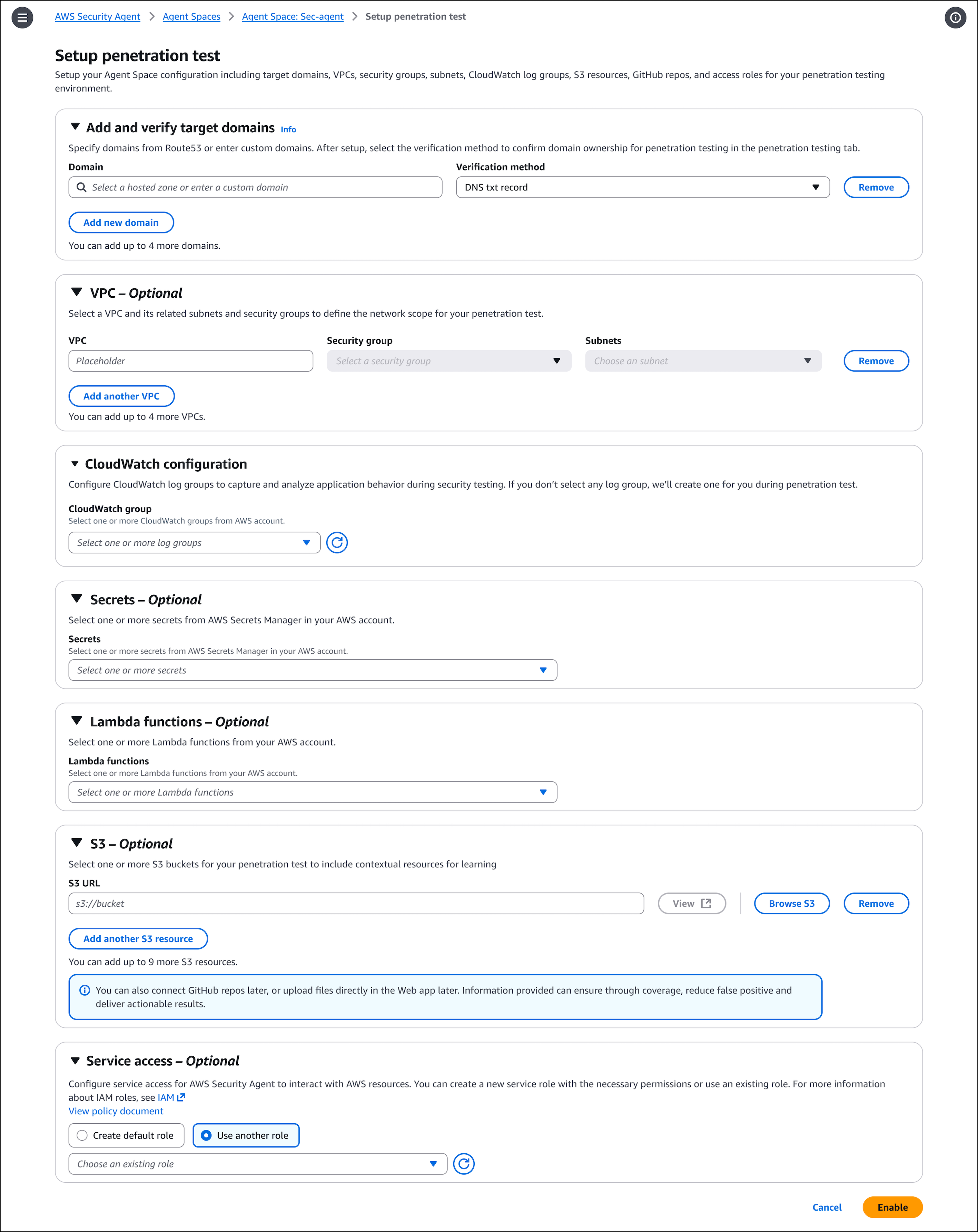 Detaillierte Einrichtungsanweisungen finden Sie in der AWS Security Agent-Dokumentation [EN].