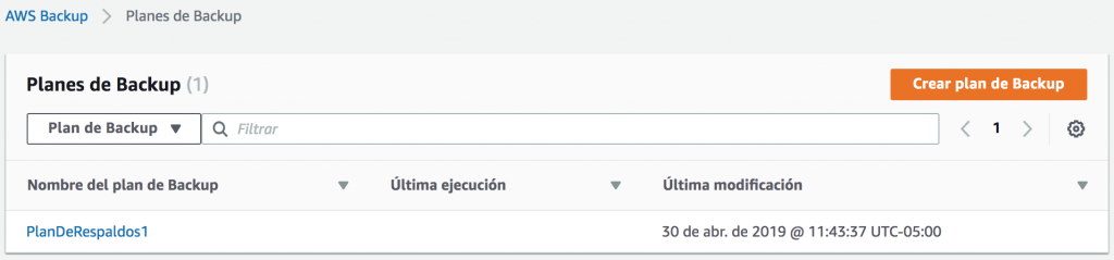 Si bien es posible crear un snapshot utilizando APIs o la Consola de AWS, durante reInvent 2018 lanzamos un nuevo servicio llamado AWS Backup. Este servicio está diseñado para ayudarlo a automatizar y administrar de forma centralizada sus copias de seguridad en una consola única.