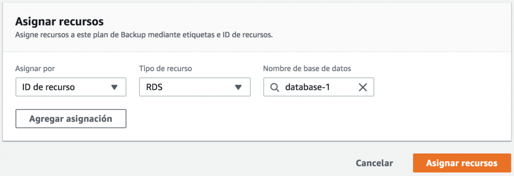 Como puede observar, en este segundo grupo de recursos seleccionamos específicamente una instancia de base de datos MySQL que tengo en el servicio de RDS.