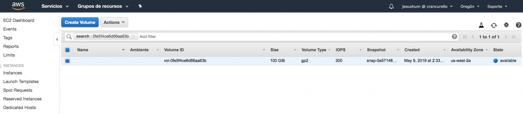 En esta pantalla podremos ver el ID del recurso creado a partir de ese punto de recuperación, mismo que podrás buscar, en este caso, en los volúmenes EBS dentro del servicio de EC2 (Fig21):