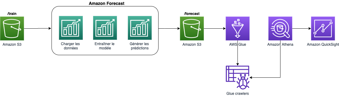 Dans cet article, nous allons voir comment générer des prédictions basées sur des données chronologiques stockées dans un datalake basé sur Amazon S3. Nous allons utiliser le service Amazon Forecast pour importer les données, entrainer un modèle de prédiction utilisant un algorithme de notre choix puis exporter ces données pour pouvoir les consommer via Amazon Athena pour requêter et Amazon Quicksight pour les visualiser.