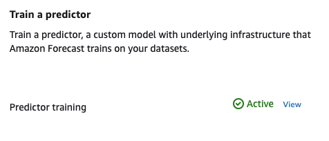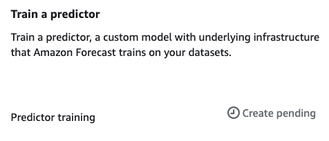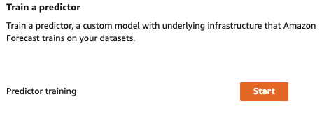 7 – Une fois l’import terminé, vous pouvez démarrer le predictor via le button “Start“. Un predictor est un modèle utilisé par Amazon Forecast pour générer vos prévisions. Pour former un predictor, Amazon Forecast utilise un algorithme de prédiction.