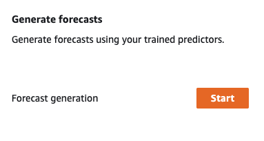 10 – Une fois l’entraînement du modèle terminé, démarrez la génération des prédictions encliquant sur Start dans l’étape Generate forecasts.