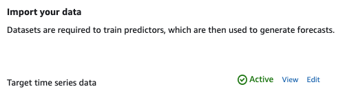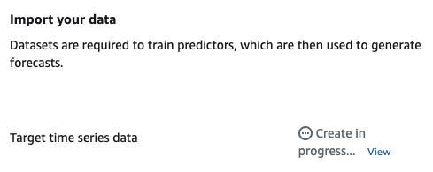 6 – Cela peut prendre quelques minutes car Amazon Forecast importe maintenant le dataset pour pouvoir l’utiliser par la suite.