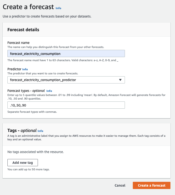 Cliquez ensuite sur “Create a forecast”. Une fois la prévision générée, vous pouvez consulter vos prévisions sur la page de consultation des prévisions.