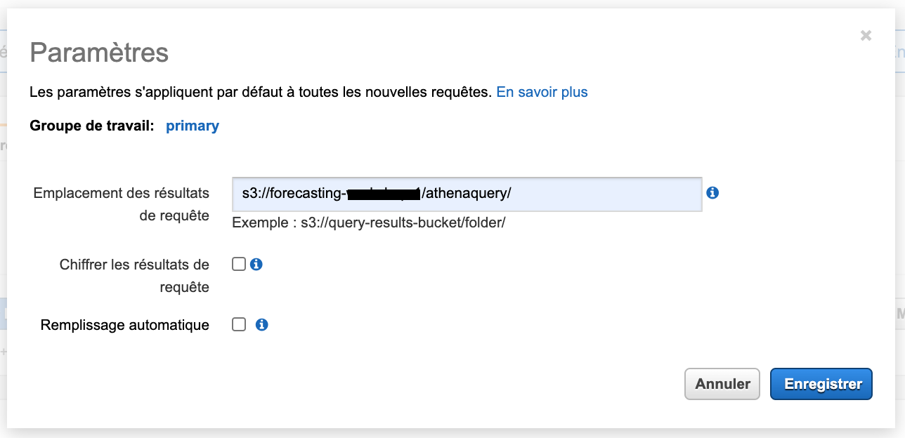 - le chemin d’accès vers votre répertoire /forecast au sein de votre compartiment S3