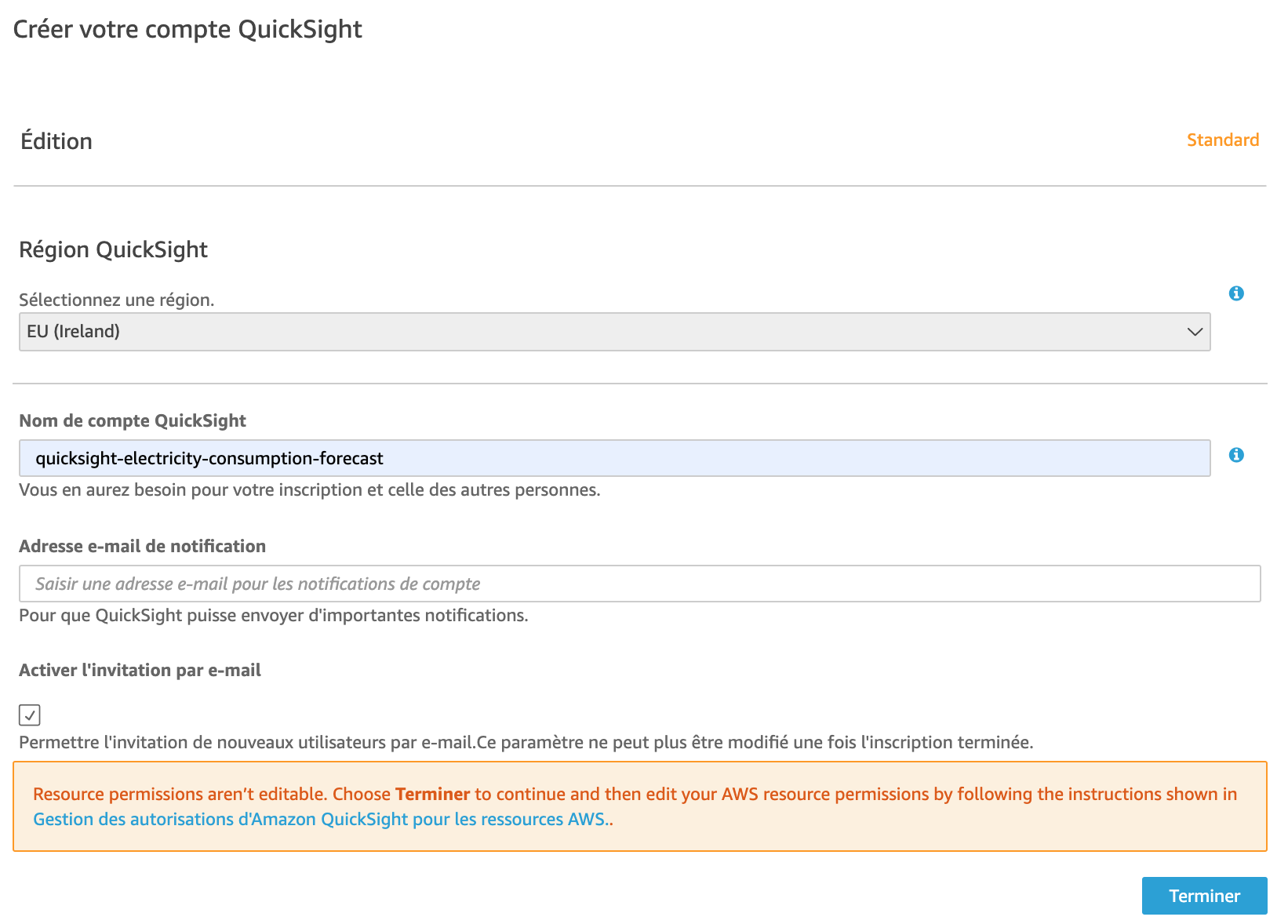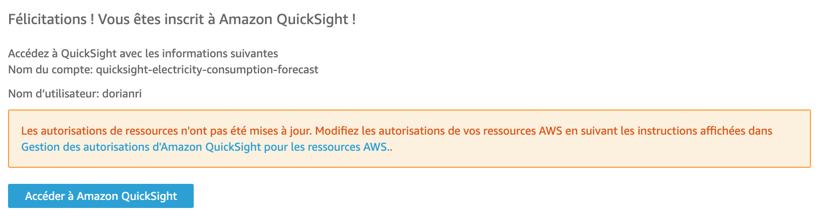 Une fois votre compte créé, cliquez sur “Accéder à Amazon Quicksight”.