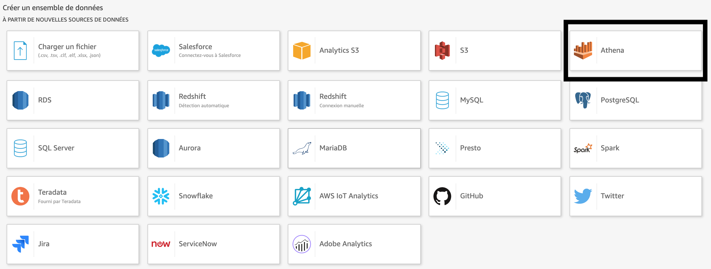 11 – Créons maintenant un nouveau dataset qui va permettre à Quicksight d’accéder à vos données via Amazon Athena. Cliquez sur “Nouvel ensemble de données”.