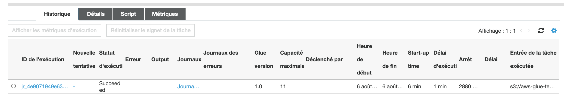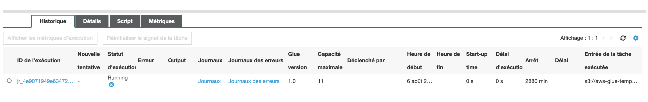 12 – Vous pouvez maintenant utiliser la console pour suivre l’exécution de votre tâche et utiliser Amazon CloudWatch afin d’obtenir les logs de l’exécution.