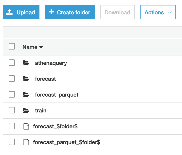 4 – Créez deux répertoires au sein de votre compartiment/bucket S3 : forecast et train.