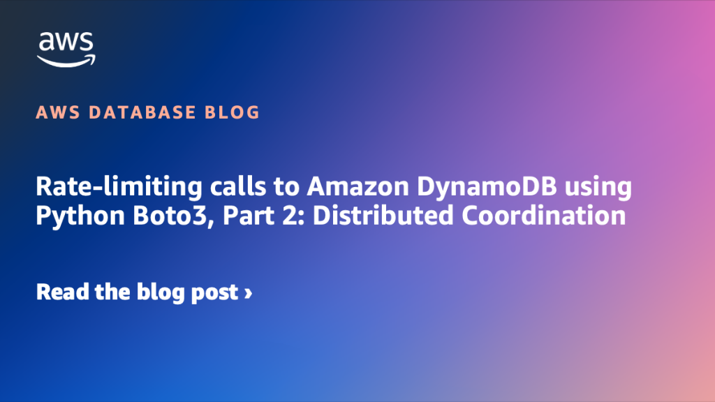 Part 1 of this series showed how to rate-limit calls to Amazon DynamoDB by using Python Boto3 event hooks. In this post, I expand on the concept and show how to rate-limit calls in a distributed environment, where you want a maximum allowed rate across the full set of clients but can’t use direct client-to-client communication.