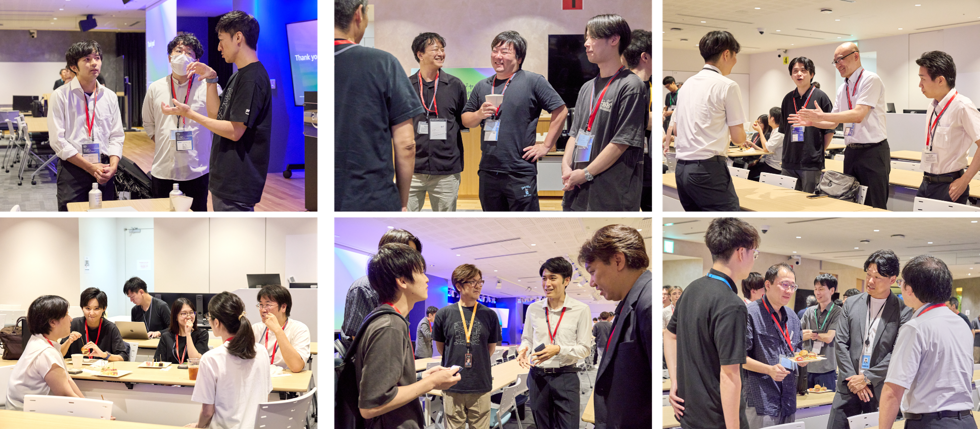 交流会では、各セッションで共有された事例を起点に、登壇者と参加者が自由に意見を交わす様子が目立ちました。生成 AI 導入における工夫や課題、今後の方向性をめぐって熱心な議論が続き、会場全体に活気があふれていました。業種や役割を超えたネットワーキングも進み、実務で得た知見を共有しながら、新たな連携や共創の芽が育まれる場となりました。