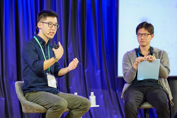 前半パートでは、特別ゲストとして来日した Anthropic 社の Member of Technical Staff である Jason Kim 氏(写真左)と、AWS ジャパン Data & AI 事業統括本部 事業開発マネージャーの田村 圭(写真右)によるディスカッションが行われました。